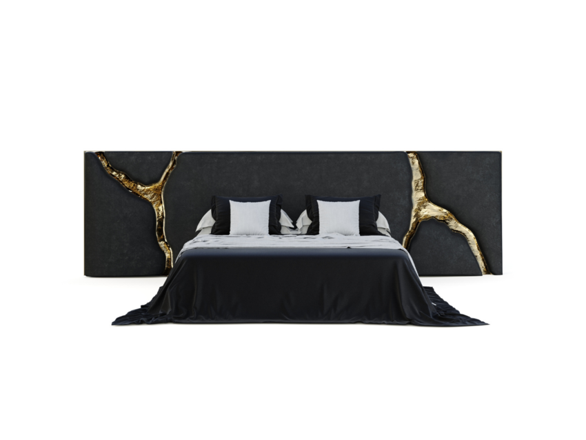 The Master Bedroom is mainly inspired by the art pieces that the client brings from all the corners of the world, like the vintage black mirror and the contrasting rug, but the center stage it’s the king-size bed. This beautiful bed is framed with the handmade Lapiaz Headboard. This imposing design piece is inspired by the French word for ‘stone’ that when frizzed, cracks into an unexpectedly stunning interior revealing all the inside details.