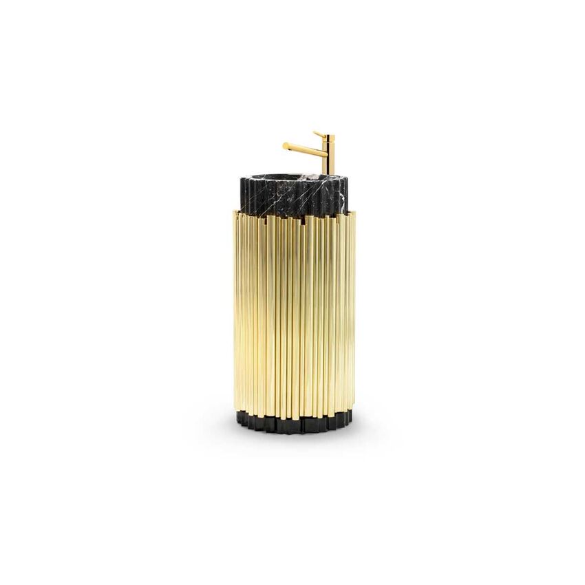The Guest Bathroom is a completely different and inspiring room covered in black marble and decorated with statement pieces. The Lapiaz Mirror is the perfect piece to open up the space and break such a strong and intense gloomy ambiance. The Symphony Freestanding is a bespoke design piece made just for this interior design project and thought to gather the décor of the living room with the bathroom.