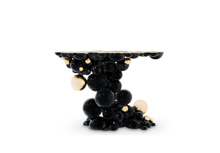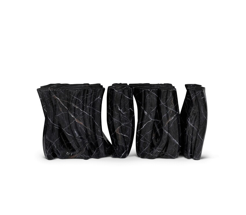 Monochrome Faux-Marble Console is a remarkable piece that stands out in any room or setting. Perfect for living spaces grounded in a contemporary style as they embrace careful craftsmanship, this console expresses a leading-edge outlook through its daring curvy shapes and silver tones. Carefully built from fiberglass, the Monochrome is composed of three separate modules, covered by an exquisite gold finish with a black gradient hint as a result of advanced experimentations, and finished with a high gloss varnish coat. An avant-garde console that conveys a seductive and fearless attitude due to its unique and challenging design.