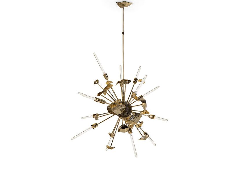 Supernova Chandelier was born from the cataclysmic explosion of a massive star. The instant of a bright starburst that was suspended into a fascinating lighting design. Supernovas can briefly outshine entire galaxies and radiate more energy than our sun will in its entire lifetime. The suspended brass particles of Supernova Chandelier will offer you a timeless, brightest, and magnificent setting.