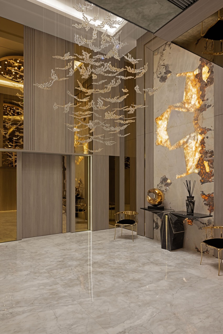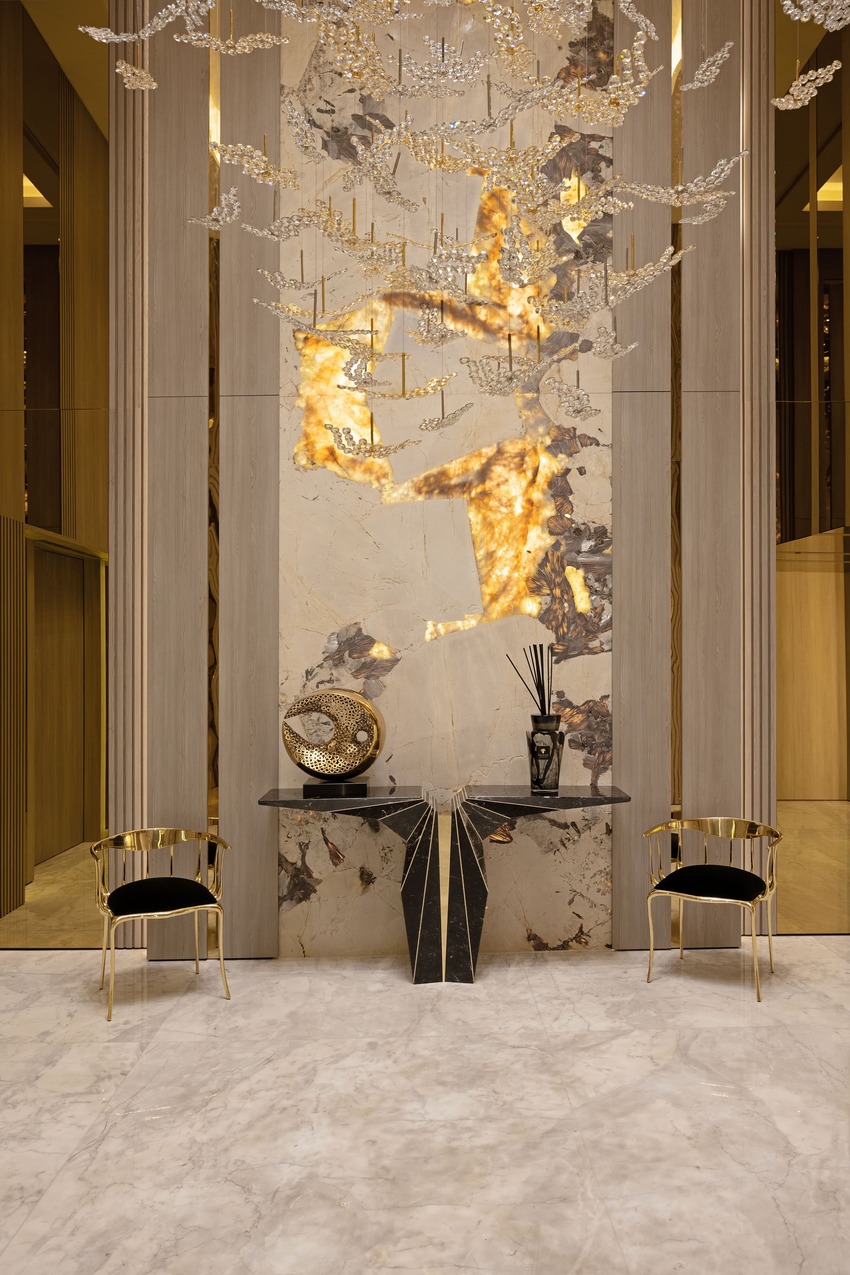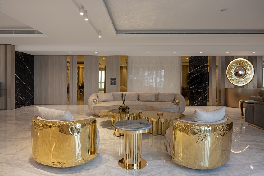 Imagine a luxurious and sophisticated open space in a luxury condo that seamlessly combines living and dining areas, adorned with a neutral color palette and elegant touches of gold. In partnership with Caffe Latte and Covet House, Toon Project Design Studio created an all-new area exuding a sense of timeless beauty and opulence.